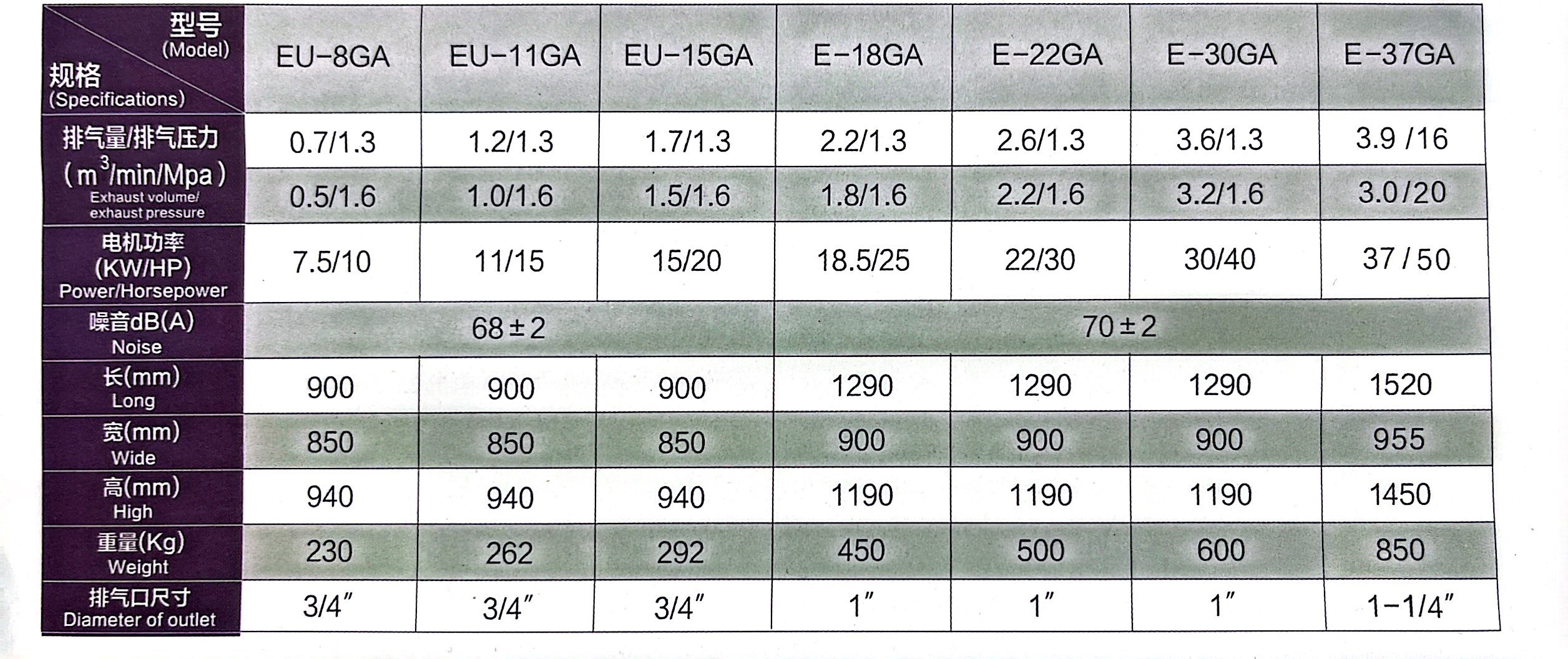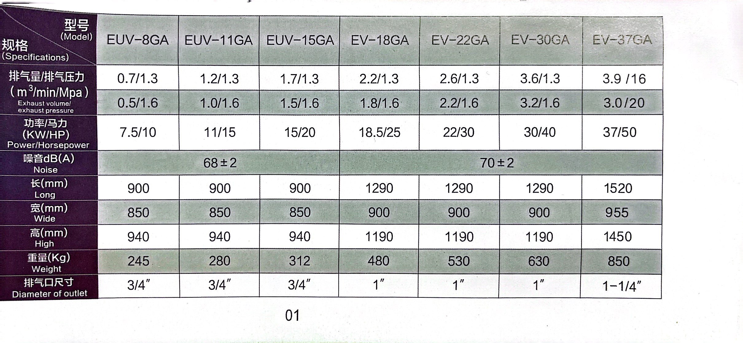 High-Quality Components – Premium bearings, corrosion-resistant rotors, and efficient filtration ensure long service life and minimal downtimeXZV-8A XZV-11A XZV-15A XZV-18A XZV-22A XZV-30A XZV-37A XZV-45A/ XZV-55A XZV-75A 1.1/0.7 1.8/0.7 2.5/0.7 3.0/0.7 3.7/0.7 5.0/0.7 6.5/0.7 7.4/0.7 10.0/0.7 13.4/0.7 1.0/0.8 1.7/0.8 2.3/0.8 2.9/0.8 3.5/0.8 4.8/0.8 6.2/0.8 7.0/0.8 9.6/0.8 12.6/0.8 0.9/1.0 1.5/1.0 2.0/1.0 2.7/1.0 3.1/1.0 4.3/1.0 5.6/1.0 6.2/1.0 8.5/1.0 11.2/1.0 0.7/1.3 1.2/1.3 1.7/1.3 2.2/1.3 2.6/1.3 3.6/1.3 4.5/1.3 5.5/1.3 7.2/1.3 9.8/1.3 ≤ambient temperature +8~`15ºC 7.5/10 11/15 15/20 18.5/25 22/30 30/40 37/50 45/60 55/75 75/100 VSD Starter 380V 3PH 50HZ(380V-3PH-60HZ/ 460V- 3PH- 60HZ/ 220V- 3PH-60HZ/ 400V-3PH-50HZ/6000V-3PH-50HZ/other voltagesd customized ) Coupling transmission ≤3 3/4″ 3/4″ 1″ 1″ 1″ 11/4″ 11/4″ 1 1/2″ 1 1/2″ 2″ 66 68 68 68 68 68 72 72 75 78 900 1100 1100 1060 1060 1060 1500 1500 1800 1900 700 750 750 820 820 820 1000 1000 1230 1230 930 1000 1000 1220 1220 1220 1290 1290 1570 1570 140 200 210 235 296 336 443 466 834 917 After Sales Service