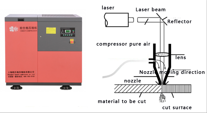Screw air compressors for laser cutting are widely used in sheet metal processing, metal processing, advertising production, kitchen utensils, automobiles, lamps, saw blades, elevators, metal crafts, textile machinery, grain machinery, glasses production, aerospace, medical equipment, Instrumentation and other industries.